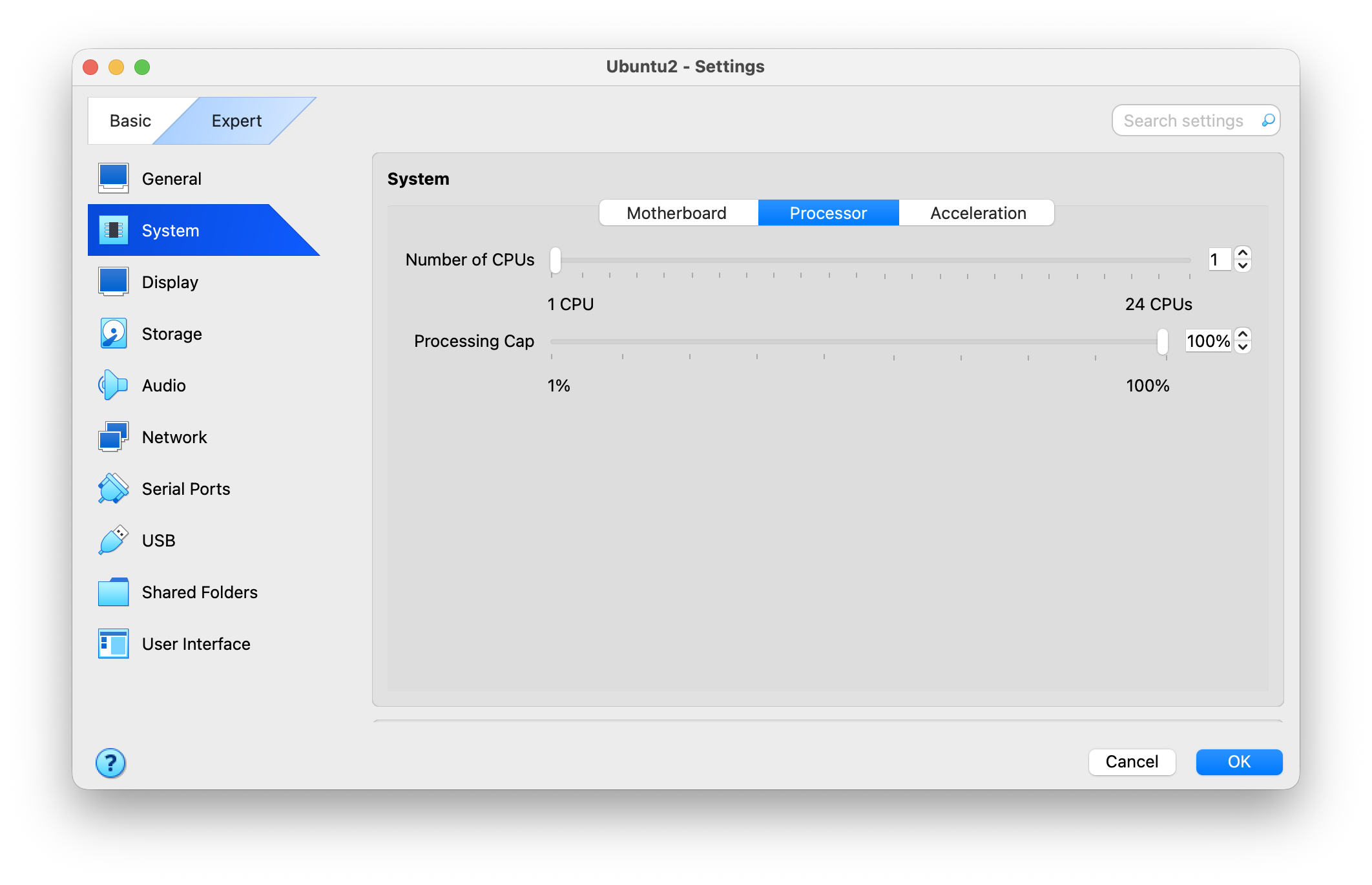 Using VirtualBox or similar, we can configure limited resources. VirtualBox allows limiting CPU count and processing cap.